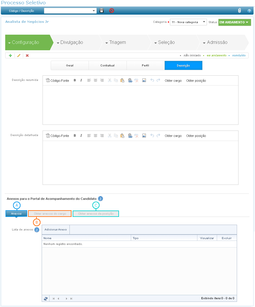 Pra encerrar especificamos as informações da vaga e etapas do processo seletivo que poderão ser visualizadas pelo candidato, no painel de acompanhamento