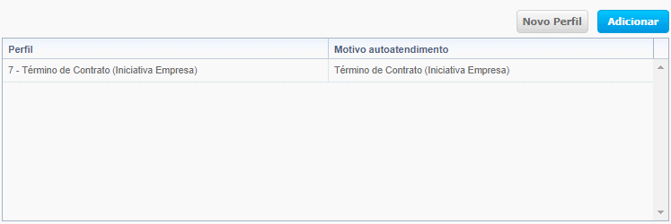 Na seção Perfis de Rescisão são disponibilizados os perfis que foram previamente cadastrados através da funcionalidade Perfis de Rescisão. Para atribuir uma configuração à um perfil, selecione o tipo de Contrato, podendo ser: Contrato de experiência, Contrato determinado, Contrato indeterminado ou Estagiários / Sem vínculo, posteriormente clique em , associe o perfil desejado e clique em .