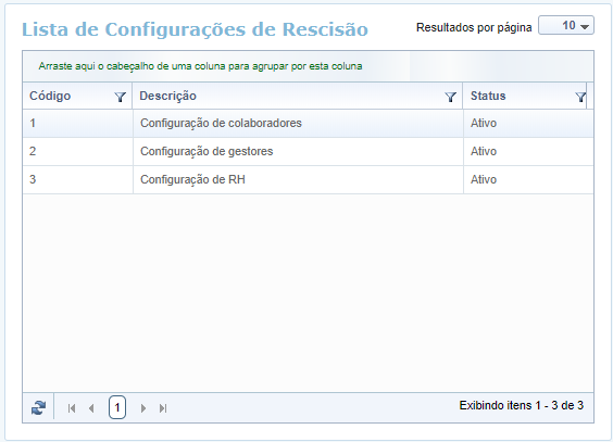 Ao abrir essa funcionalidade é apresentada uma relação das configurações já cadastradas: