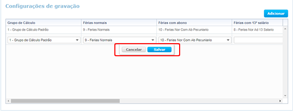 Além disso, com esta opção ainda habilitada, a validação permitirá grupos de cálculo iguais desde que os Tipos de Cargo das configurações sejam diferentes.