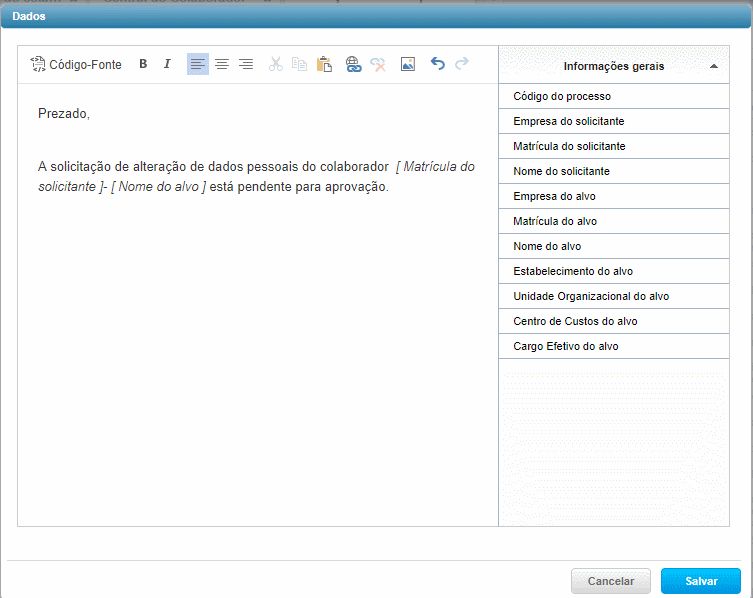 Nesta guia defina como será o envio dos e-mails de Pendência, Aprovação e Reprovação para o processo de benefícios.
