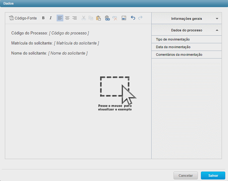 Caso seja necessário enviar informações adicionais relacionadas ao processo, utilize a seção Informação Adicional para definir quais serão as informações a serem anexadas ao e-mail.