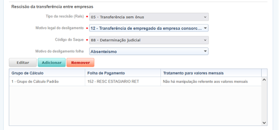 Será necessário a adição dos grupos de cálculos ao clicar no botão Adicionar.