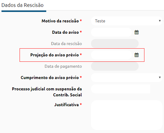 Ao realizar a solicitação de rescisão e o resultado do cálculo da data de projeção for um valor decimal, o sistema irá arredondar esse valor para cima.