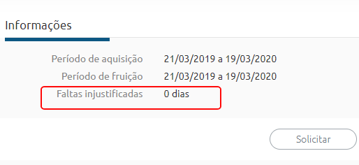 Exibir a quantidade de faltas injustificadas? - será disponibilizada ao solicitante a informação das faltas injustificadas do alvo do processo, veja exemplo: